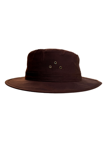 Dank des klassischen Australianer-Designs mit breiter Krempe und seitlichen Klimalöchern ist er ein zuverlässiger Begleiter bei Wanderungen, beim Camping oder entspannten Tagen im Park. Das dunkelbraune, gewachste Material überzeugt durch einen stilvollen, funktionalen Look, der sich vielseitig kombinieren lässt.